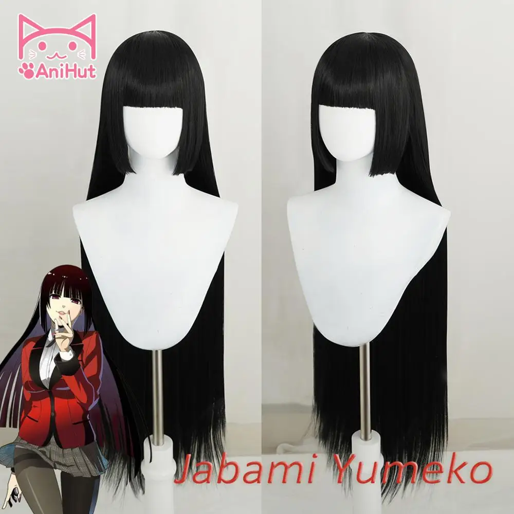 HIGH QUALITY AniHut Jabami Yumeko Wig Anime Kakegurui Cosplay Wig Women Black 100cm Heat Resistant Synthetic Hai