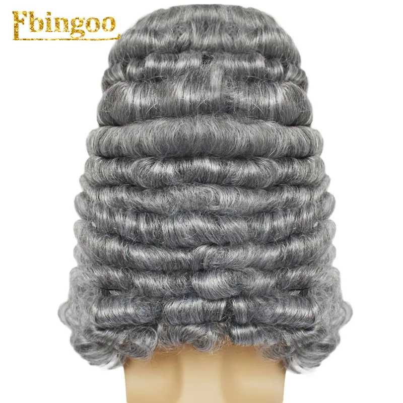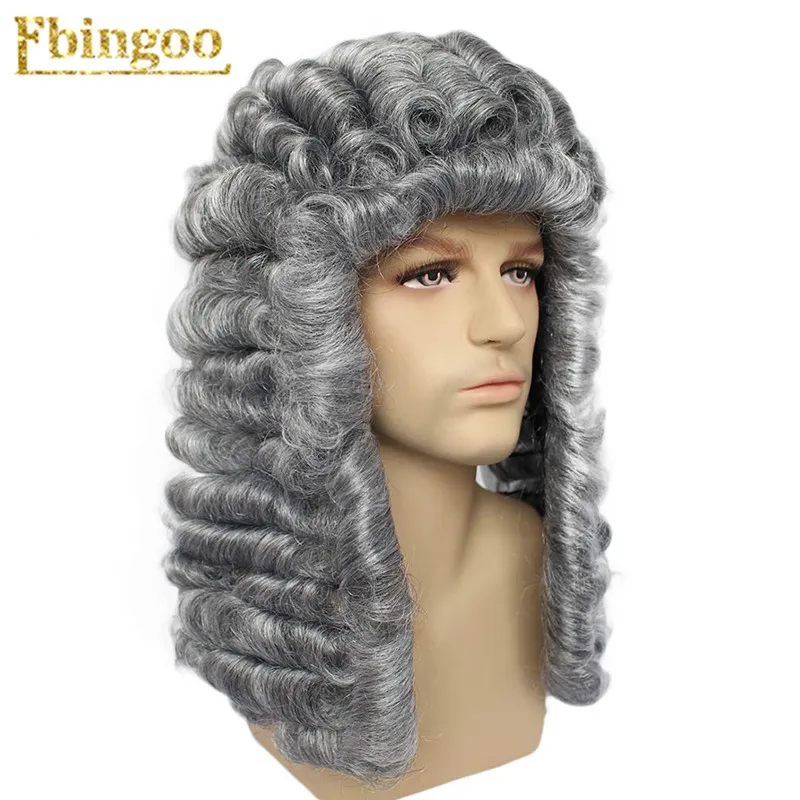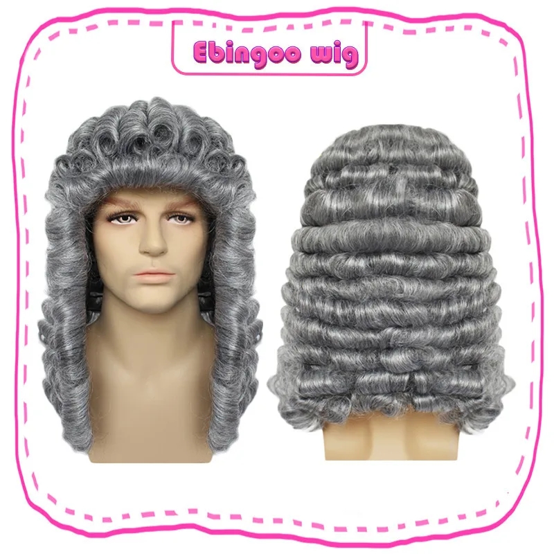 Ebingoo Baroque Curly White Grey Male Lawyer Judge Colonial Deluxe Historical Costume Synthetic Cos