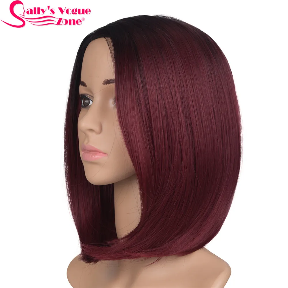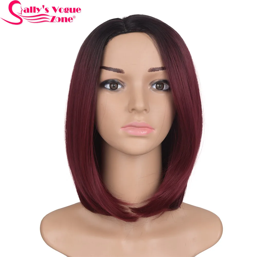 TOP Sallyhair High Temperature Synthetic Straight Short Ombre Black Wine Red Color American African Bob
