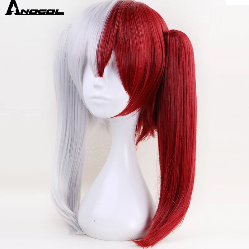 Anogol Double Ponytail My Boku no Hero Academia Todoroki Shoto Half White Red Long Straight Synthet