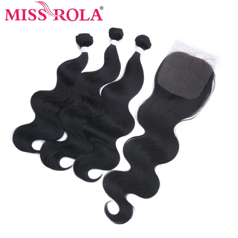 BEST SELLER Miss Rola Body Wave Bundles With Lace Closure Synthetic Hair Extension With Closure 16-20 Inches 3